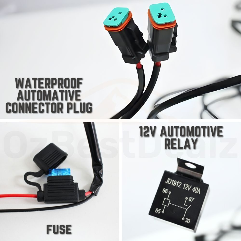 Upgrade your auxiliary lighting setup with this reliable 12V wiring harness, designed for easy installation of LED light bars, spotlights, and driving lights. Featuring waterproof automotive connectors, a 40A relay and an inline fuse for added safety, this harness ensures stable power delivery and long-lasting performance.