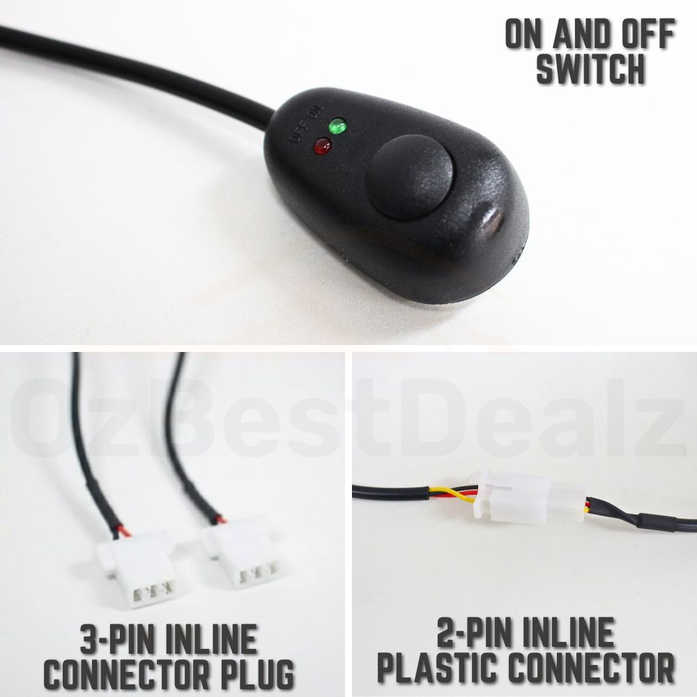The on/off switch with indicator light allows convenient control from inside the cabin, while the 3-pin and 2-pin connectors provide secure and quick plug-and-play connections. Built for versatility, it is perfect for 4WDs, trucks, SUVs, and off-road vehicles.