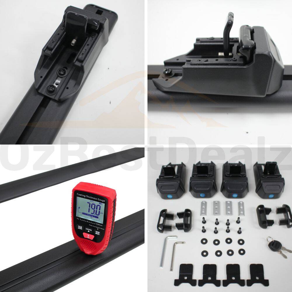 2 x Universal Aluminium Clamp Style Roof Cross Bars Suits flush and high raised rails 130cm Black Lockable Crossbars Rack Luggage Carrier