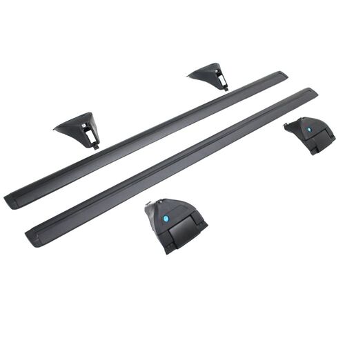 • 2 x Black Aluminium Crossbars with rain gutter clamp brackets