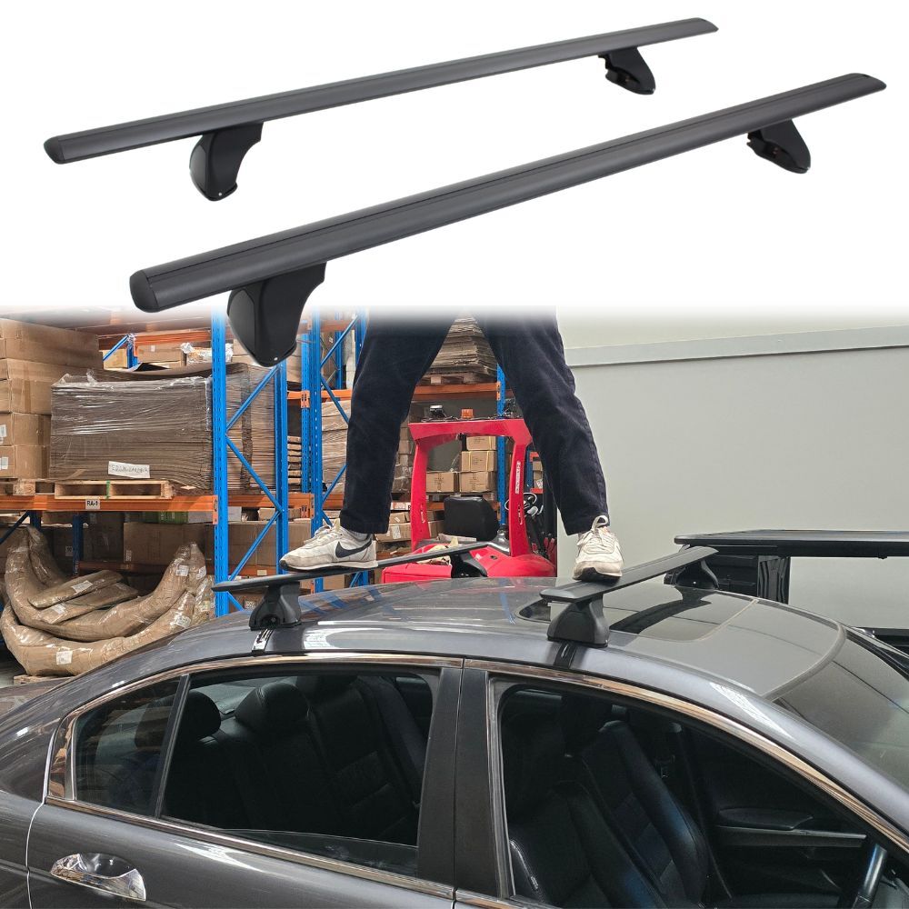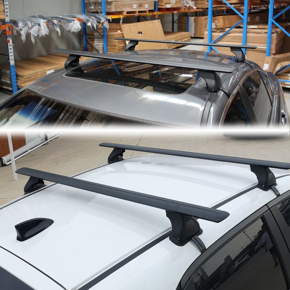 2 x Premium Universal Aluminium Clamp Style Roof Cross Bars 130cm Black Crossbars Luggage Carrier Rack