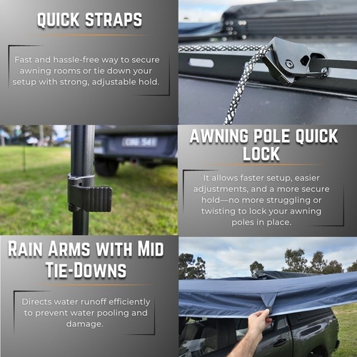 • Quick Straps for front and back – Keeps the awning secure and prevents sagging.