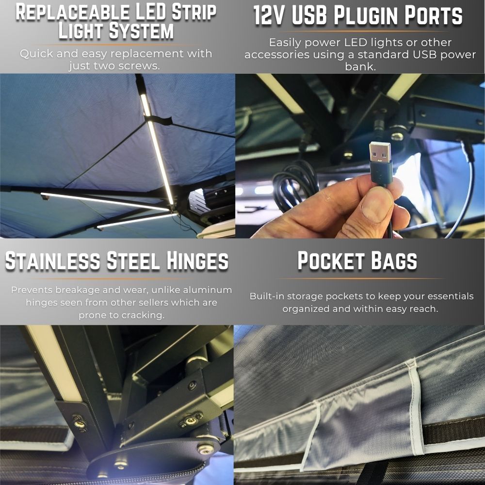 • Includes LED light strips with 12V USB Plugin Ports