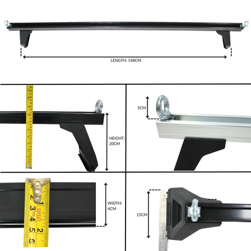 The package comes complete with 6 x heavy-duty eye bolts for secure tie-downs, ensuring a sturdy design. Install 2 or 3 bars according to your preference, with a load rating of 120kg for 2 and 150kg for 3.