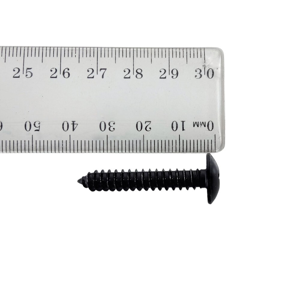 This ad is for 30 x self-tapping black stainless steel screws with 33mm thread length. These screws are high-quality anti-rust and weatherproof, designed for automotive use.