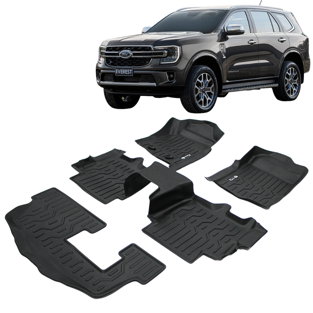 Cobra 4x4 5D TPE floor mat liner 3 row set suitable for Ford Everest Next Gen 2022 Onwards. Protect your car with our durable 5D TPE Floor mat liner. These mats are designed to fit perfectly and shield your floor from spills and dirt. Easy to clean and built to last, they're the ultimate solution for keeping your vehicle's interior looking its best.