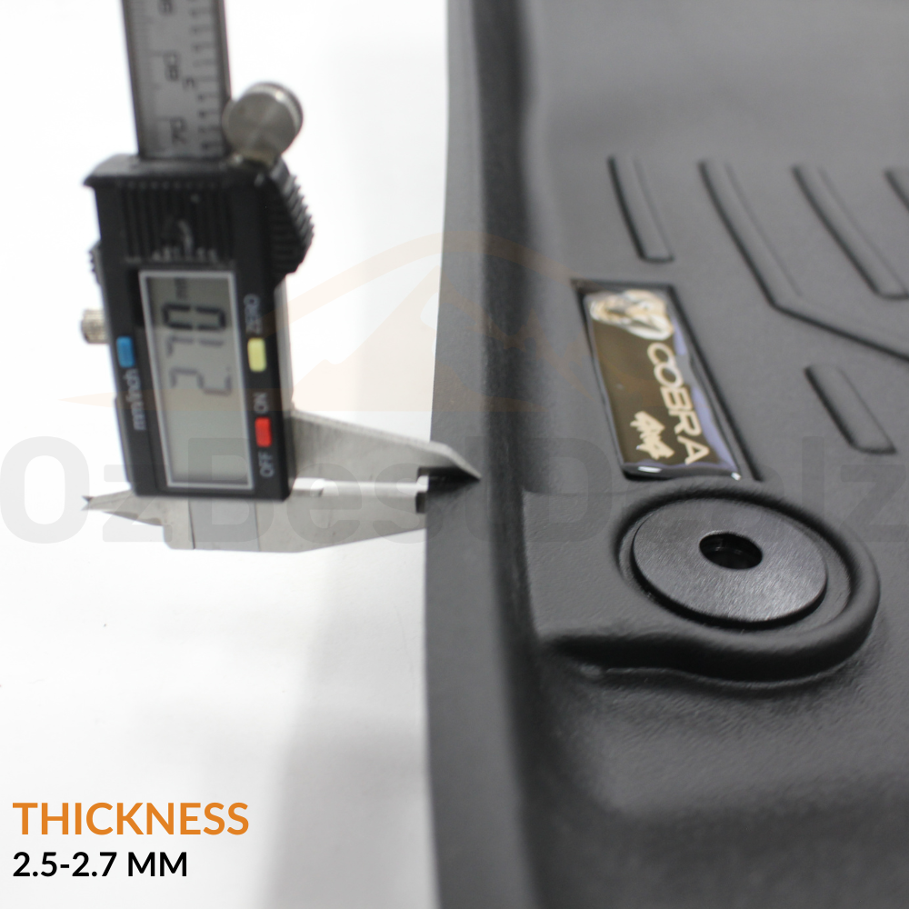 Cobra 4x4 5D TPE floor mat liner suitable for Jeep JT Gladiator 2020 onwards. Protect your car with our durable 5D TPE Floor mat liner. These mats are designed to fit perfectly and shield your floor from spills and dirt. Easy to clean and built to last, they're the ultimate solution for keeping your vehicle's interior looking its best.