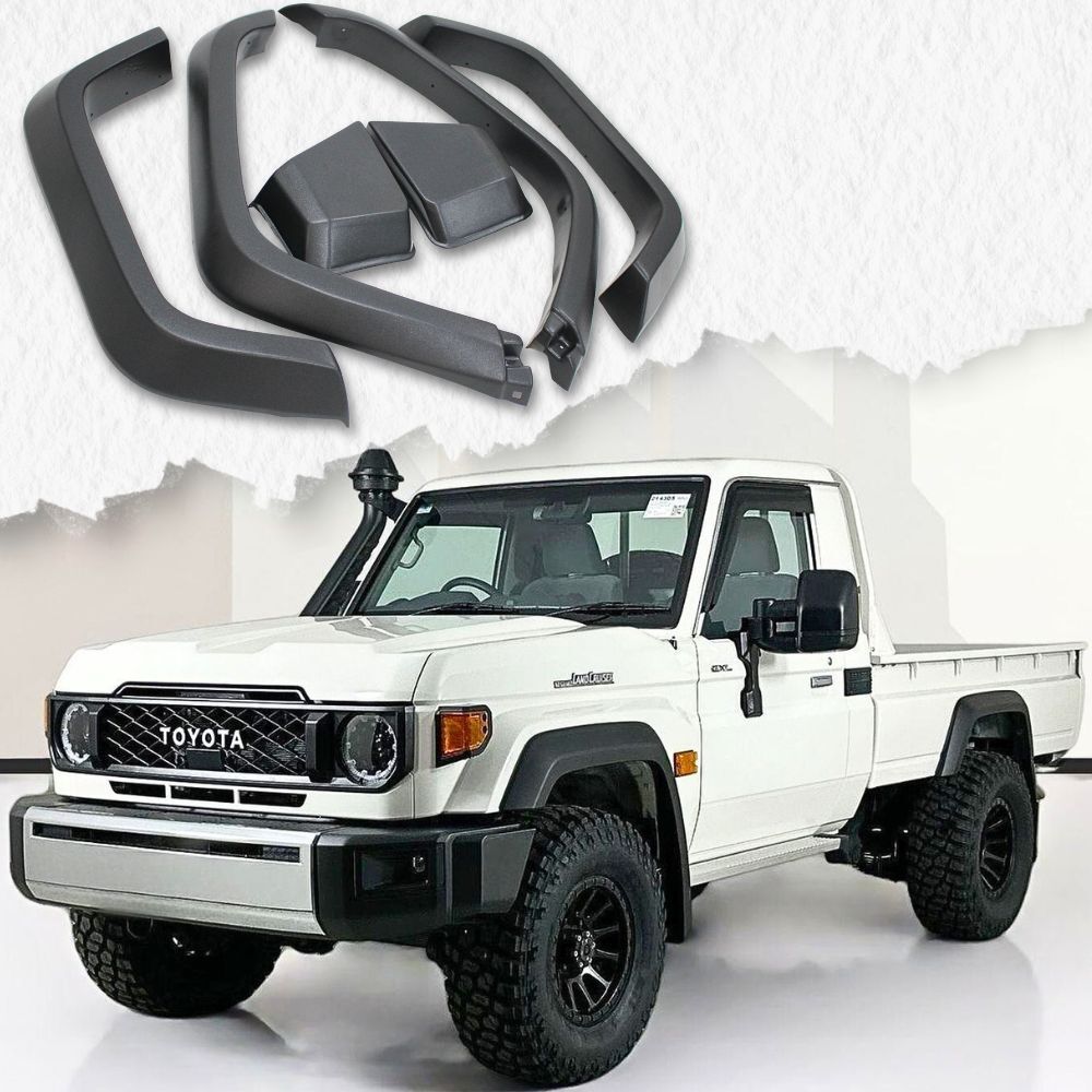 Enhance Your Landcruiser 79 Series with OEM Style Matte Black Textured Fender Flares Suitable for the Australian spec tubs with a 80cm opening for the wheel guard