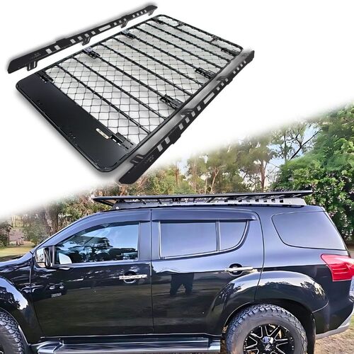 Aluminium Flat Mesh Roof Rack Platform Suits Isuzu Mu-x Mux 2013 - 2021 Brackets Black Powder Coated