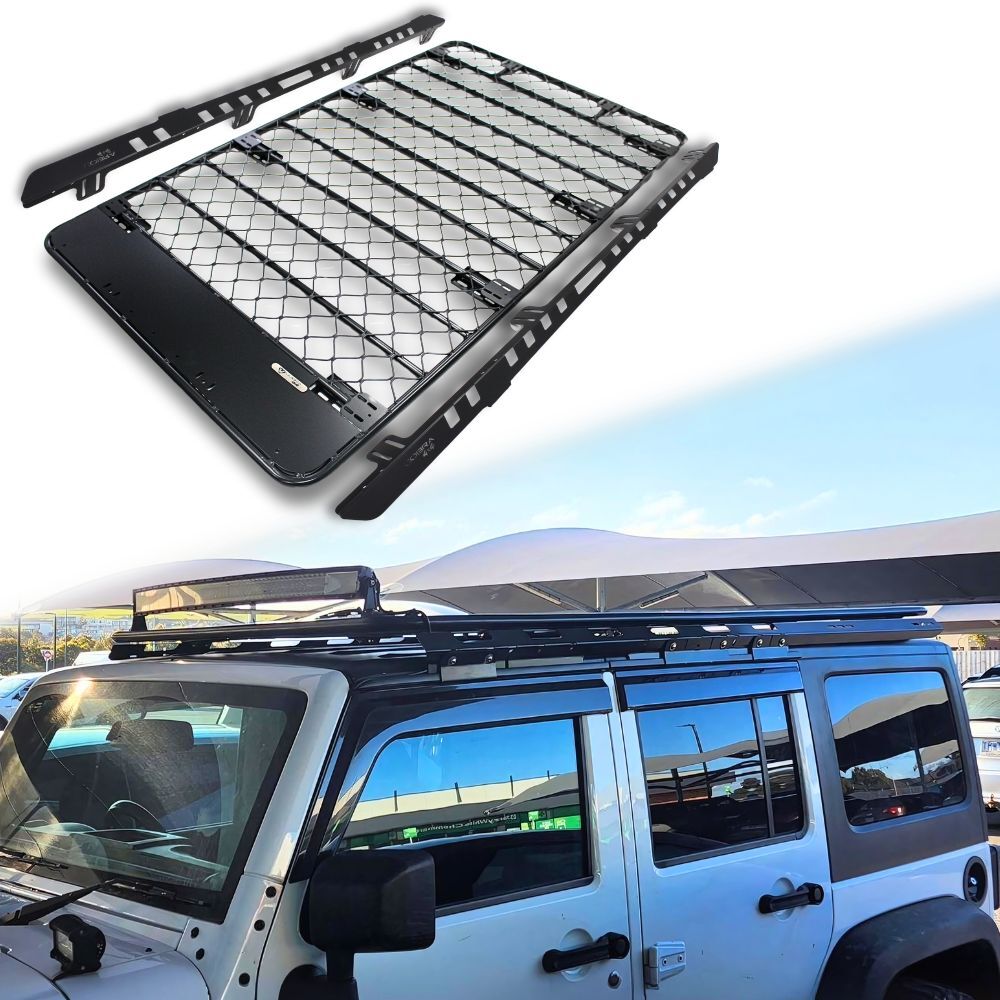 The Cobra 4x4 Aluminium Flat Mesh Roof Rack is a stylish and affordable choice for Jeep Wrangler JK and JL 4-Door models. This brackets on this sleek rack offers the premium look of high-end aluminum racks without the hefty price tag.