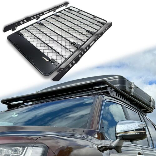 Aluminium Flat Mesh Roof Rack Platform Suits Landcruiser 200 Series Brackets Black Powder Coated