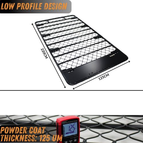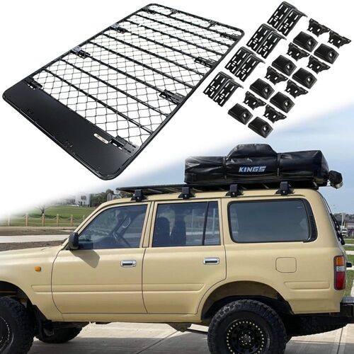 Aluminium Flat Mesh Roof Rack Platform Suits Landcruiser 80 90 76 75 77 Series Pajero Brackets Black Powder Coated