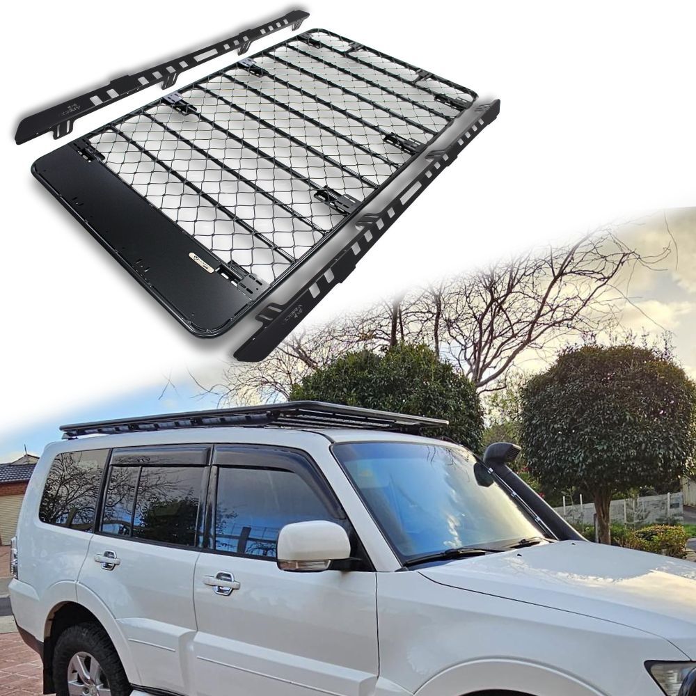 Aluminium Flat Mesh Roof Rack Platform Suits Mitsubishi Pajero 2007 Onwards Brackets Black Powder Coated