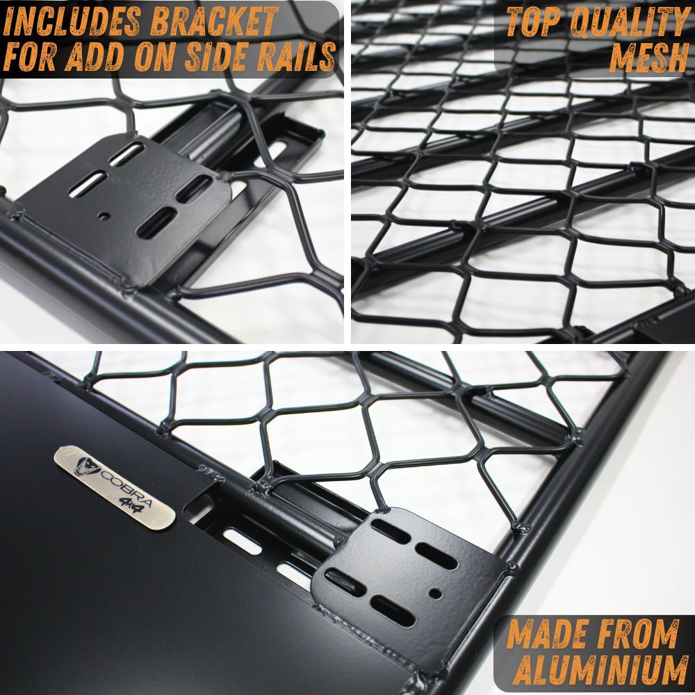 The Cobra 4x4 Aluminium Flat Mesh Roof Rack is a stylish and affordable choice for Mitsubishi Pajero V93/97 NS/NT/NW/NX 2007 onward models. This brackets on this sleek rack offers the premium look of high-end aluminum racks without the hefty price tag.