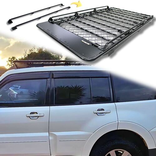 Aluminium Flat Mesh Roof Rack With Removable Side Rails Suits Everest 2015 - 2022 220cm x 125cm Platform Brackets Black Powder Coated