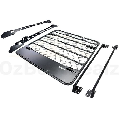 Aluminium Flat Mesh Roof Rack With Removeable Side Rails Suits Amarok 2023 Onwards Onwards Platform Brackets Black Powder Coated