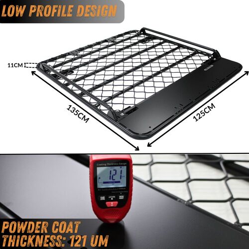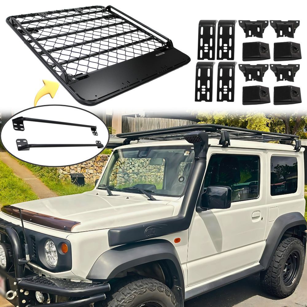 Aluminium Flat Mesh Roof Rack With Removable Side Rails Suits Suzuki Jimny 2018 Onwards Platform Brackets Black Powder Coated