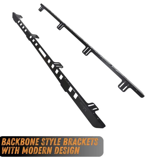 Measuring 220cm (L) x 125cm (W), this rack features a thick black powder-coated finish for durability and a sleek appearance. Its sturdy Cobra 4x4-style brackets provide a cost-effective, premium alternative to pricier aluminium racks, making it perfect for mounting rooftop tents without modification by simply removing the side rails without needing to grind them off.