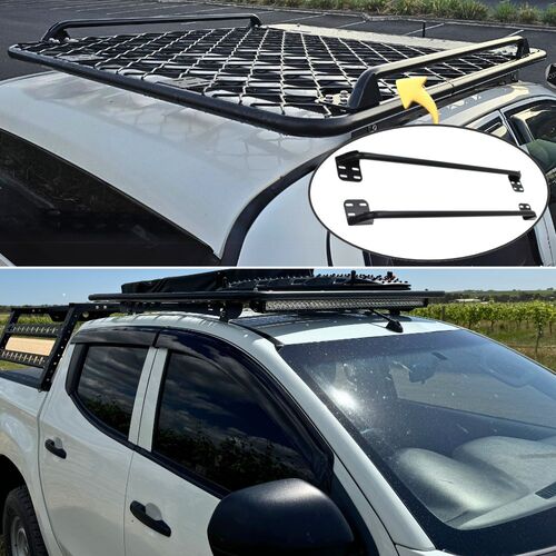Measuring 135CM front to back and 125cm left to right, this rack is not only enhanced with a durable thick Black Powder Coating for a sleek aesthetic but is also a rugged solution for your adventures. Precision-engineered and equipped with sturdy brackets, it seamlessly blends style and functionality for your Triton. Elevate your vehicle's utility with this robust and versatile Aluminium Convertible Rack - a perfect fusion of form and durability, eliminating the need for any grinder action when installing a rooftop tent.