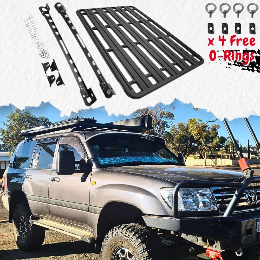 Aluminium Flat Roof Rack Cage Fits Landcruiser 100 105 Series LX470 4WD 1998 - 2007 220cm x 142cm Mounts Tradie Black