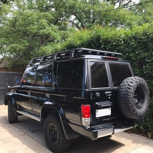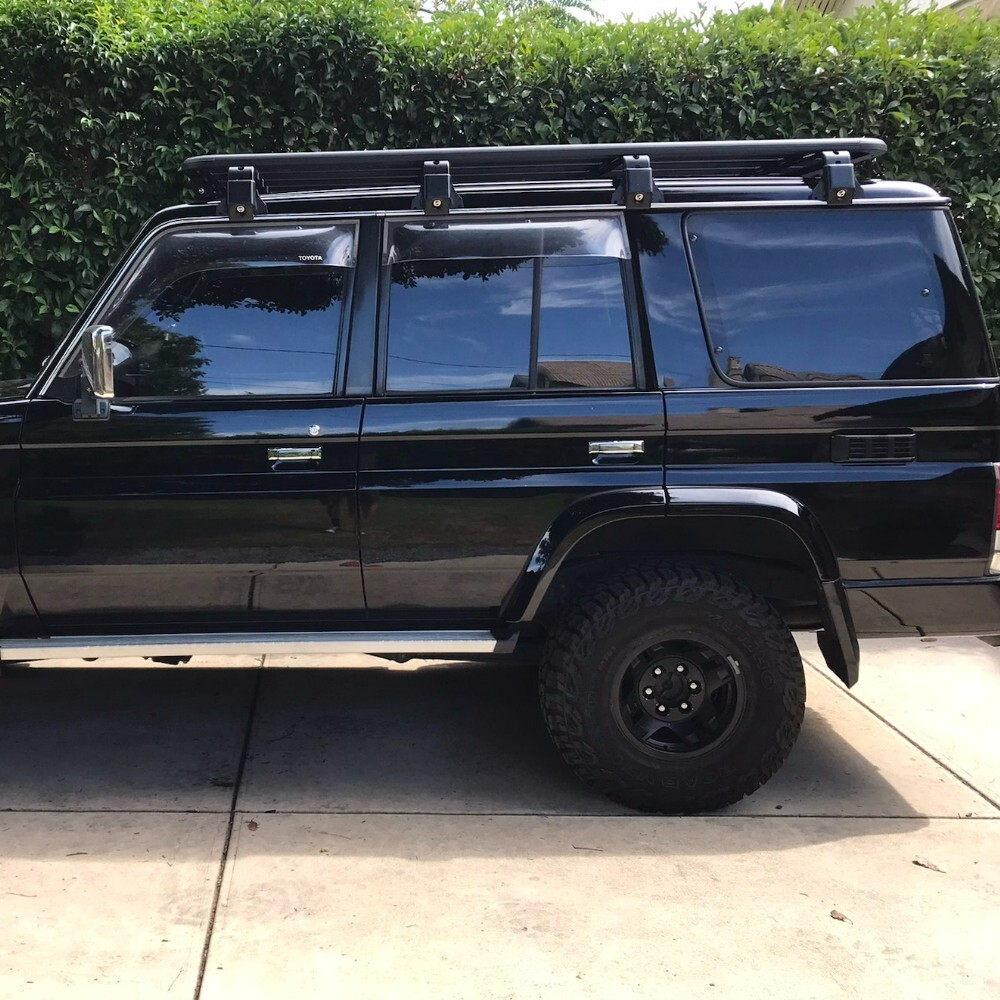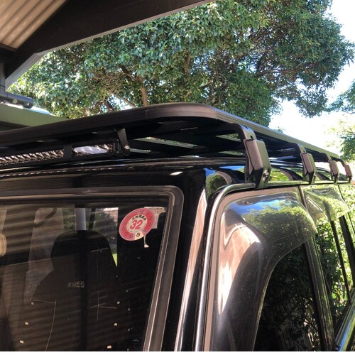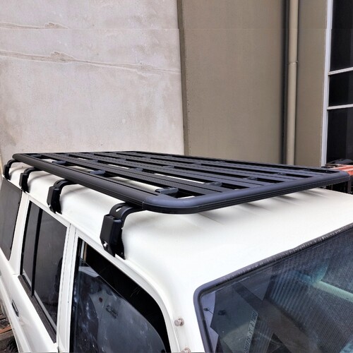 Aluminium Flat Roof Rack Cage Fits Landcruiser 76 Series 220cm x 125cm Rain Gutter Mounts Tradie Black Rack