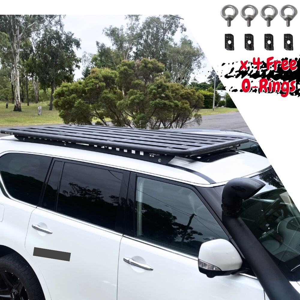 Aluminium Flat Roof Rack Cage Fits Nissan Patrol Y62 4DR 4WD 2012 - 2024 220cm x 142cm Tradie Black