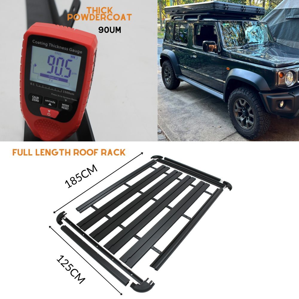 Full Length Flat Roof Rack Aluminium Platform Fits Suzuki Jimny 2018 onwards 185cm x 125cm GJ Series Tradie Steel Full Length