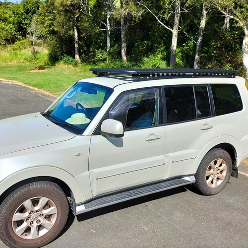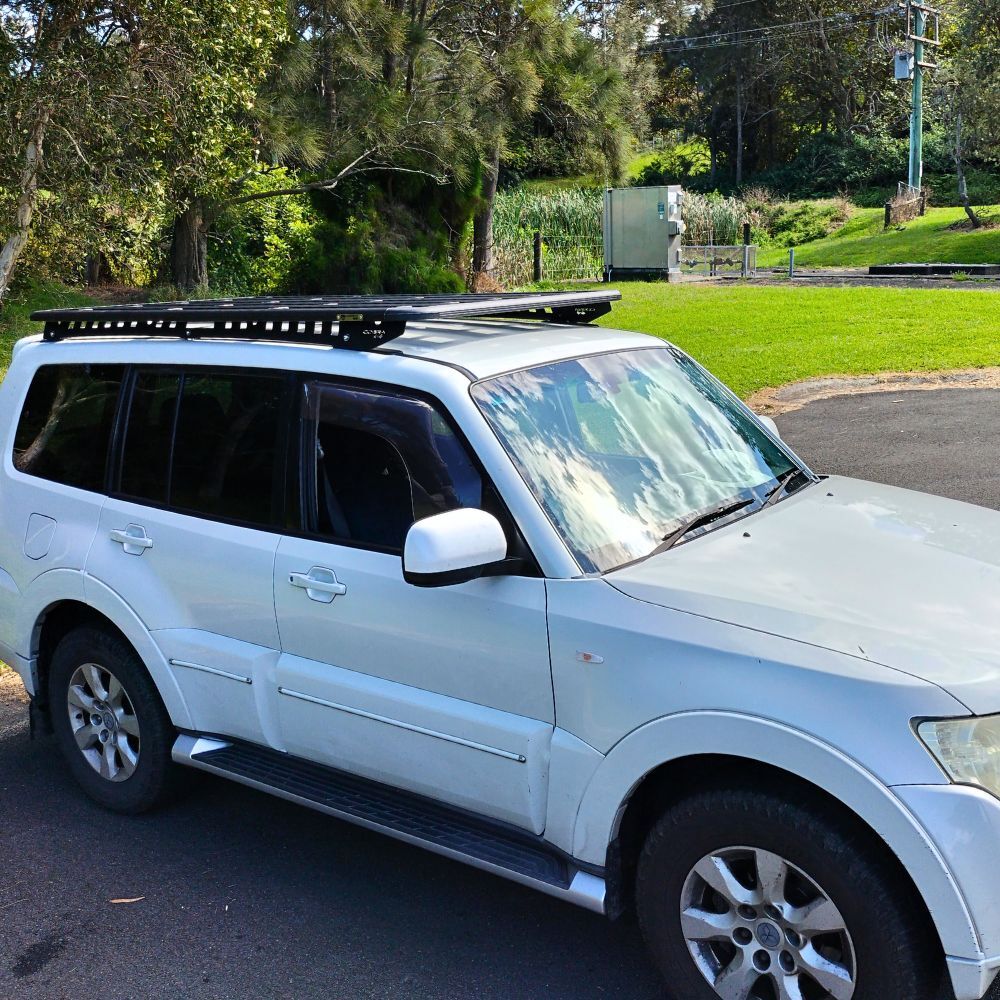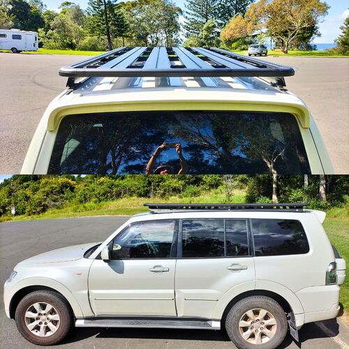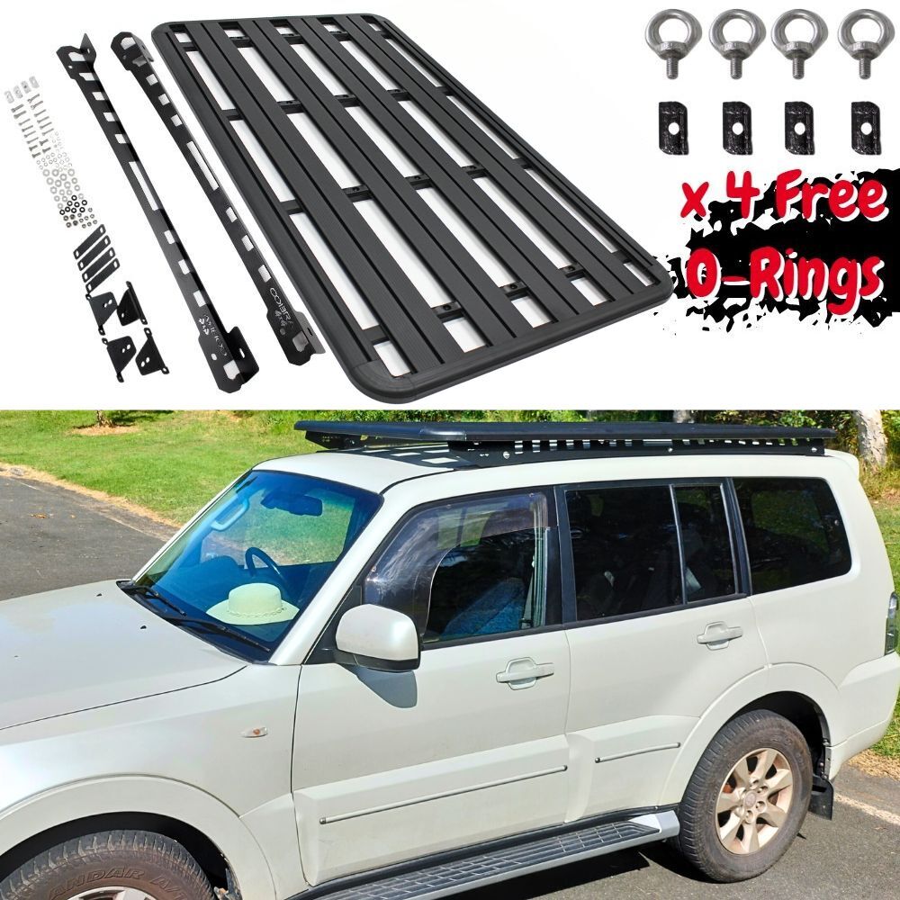 Aluminium Flat Roof Rack Fits Mitsubishi Pajero 2007 Onwards 220cm x 125cm Mounts Tradie Black