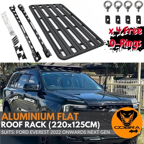 Aluminium Flat Roof Rack Platform Fits Ford Everest 2022 Onwards Next Gen 220cm x 125cm Mounts Tradie Black