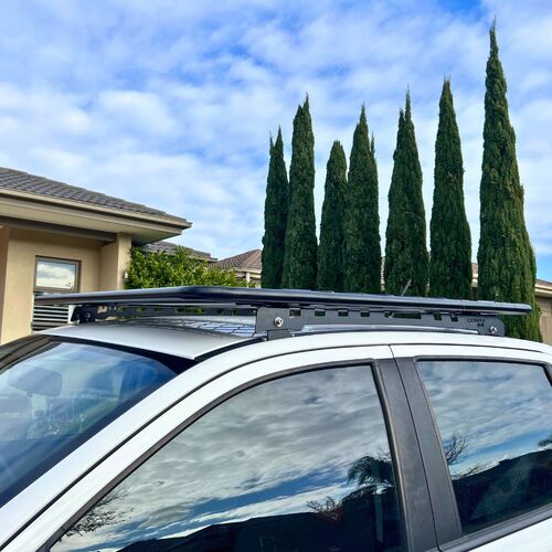 The Cobra 4x4 Aluminium Flat Mesh Roof Rack (AFM) to suit Amarok 2010 - 2022 dual cab models. Take it up a notch with the Cobra 4x4 bracket, providing a stylish alternative at a fraction of the cost, mimicking the appearance of pricier aluminum racks on the market.