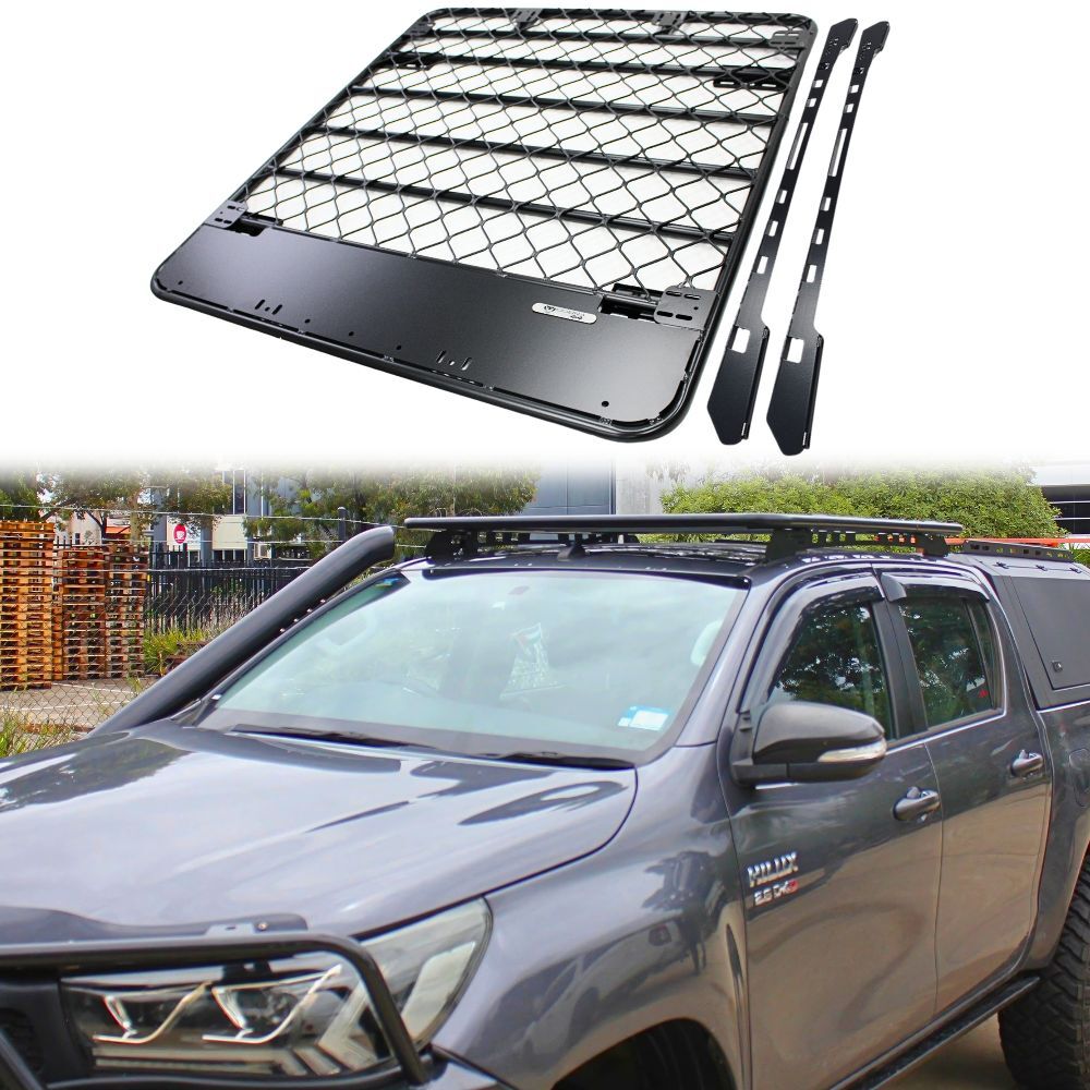 Aluminium Flat Roof Rack Platform Suits Hilux 2005 - 2021 Dual Cab Brackets Black Powder Coated