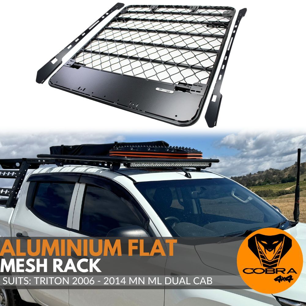 The Cobra 4x4 Aluminium Flat Mesh Roof Rack (AFM) to suit Mitsubishi Triton MN ML 2006 - 2014 dual cab models. Take it up a notch with the Cobra 4x4 bracket, providing a stylish alternative at a fraction of the cost, mimicking the appearance of pricier aluminum racks on the market.