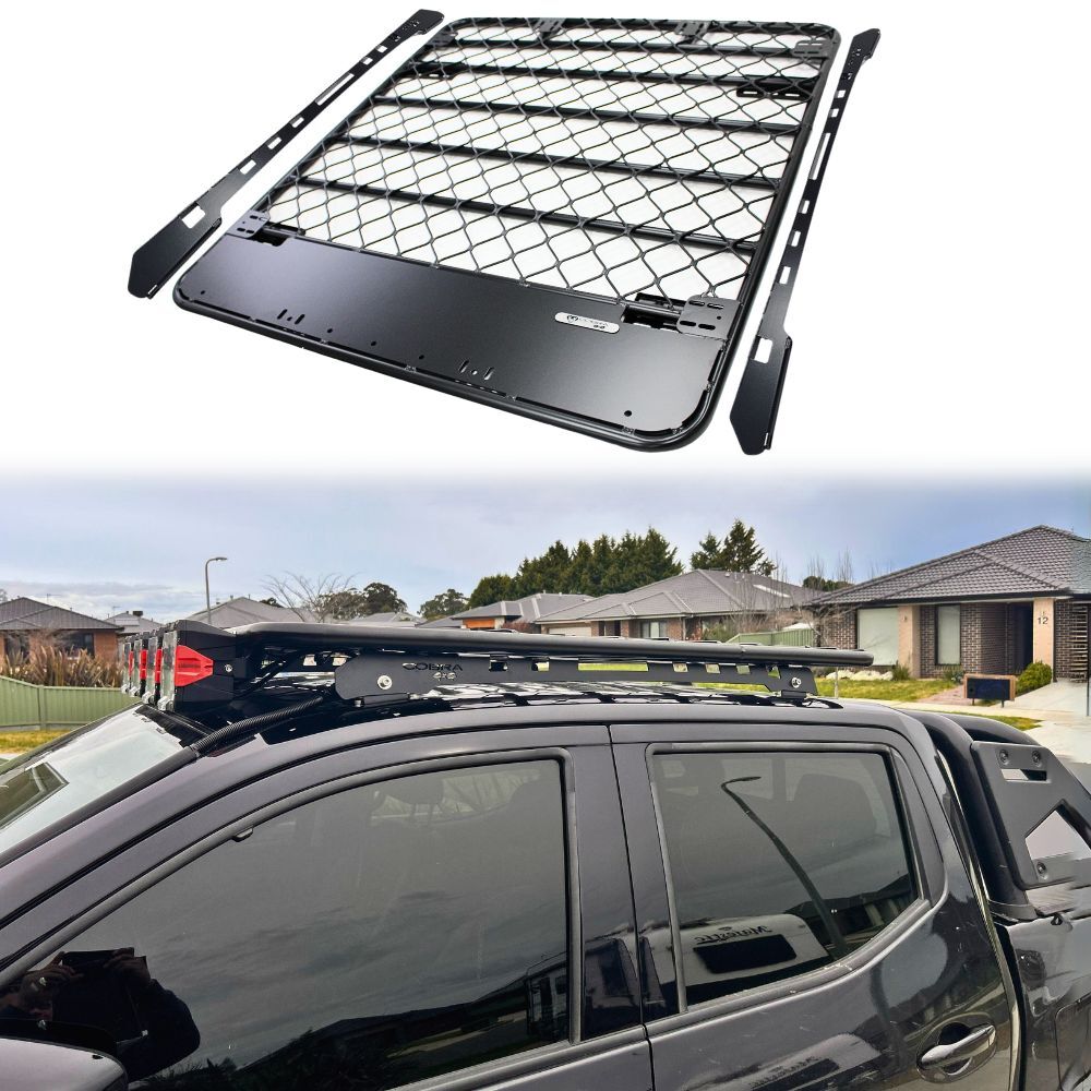 Aluminium Flat Roof Rack Platform Suits Nissan Navara NP300 2021 Onwards Dual Cab Brackets Black Powder Coated