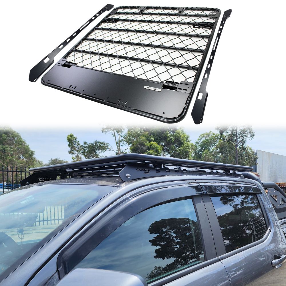 The Cobra 4x4 Aluminium Flat Mesh Roof Rack (AFM) to suit Ranger Next Gen 2022 Onwards dual cab models. Take it up a notch with the Cobra 4x4 bracket, providing a stylish alternative at a fraction of the cost, mimicking the appearance of pricier aluminum racks on the market.