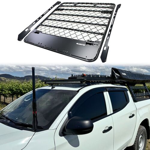 Aluminium Flat Roof Rack Platform Suits Triton 2015 - 2023 MQ MR Dual Cab Brackets Black Powder Coated