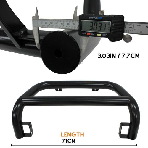 This Nudge Bar is made with black powder-coated steel for long life and increased durability.