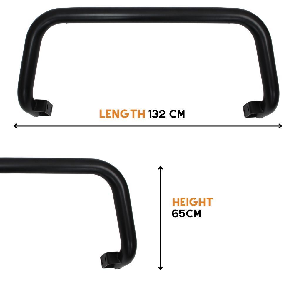 This Nudge Bar is made with black powder-coated Stainless steel for long life and increased durability.