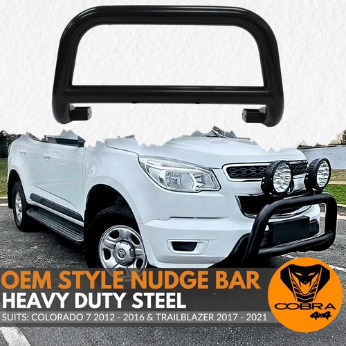 Upgrade your car with the Cobra 4x4 OEM Style Nudge Bar for the Holden Colorado 7 2012–2016 & Holden Trailblazer 2017–2021 models. This nudge bar adds a touch of ruggedness to your vehicle while also protecting against impacts while your vehicle is on the highway as well as off-road. It will save you money and headaches in the long run. This is a must-have accessory for any Trailblazer owner looking to elevate their car's practicality and appeal