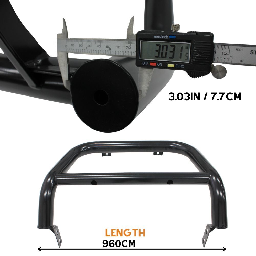 This Nudge Bar is made with black powder-coated steel for long life and increased durability.