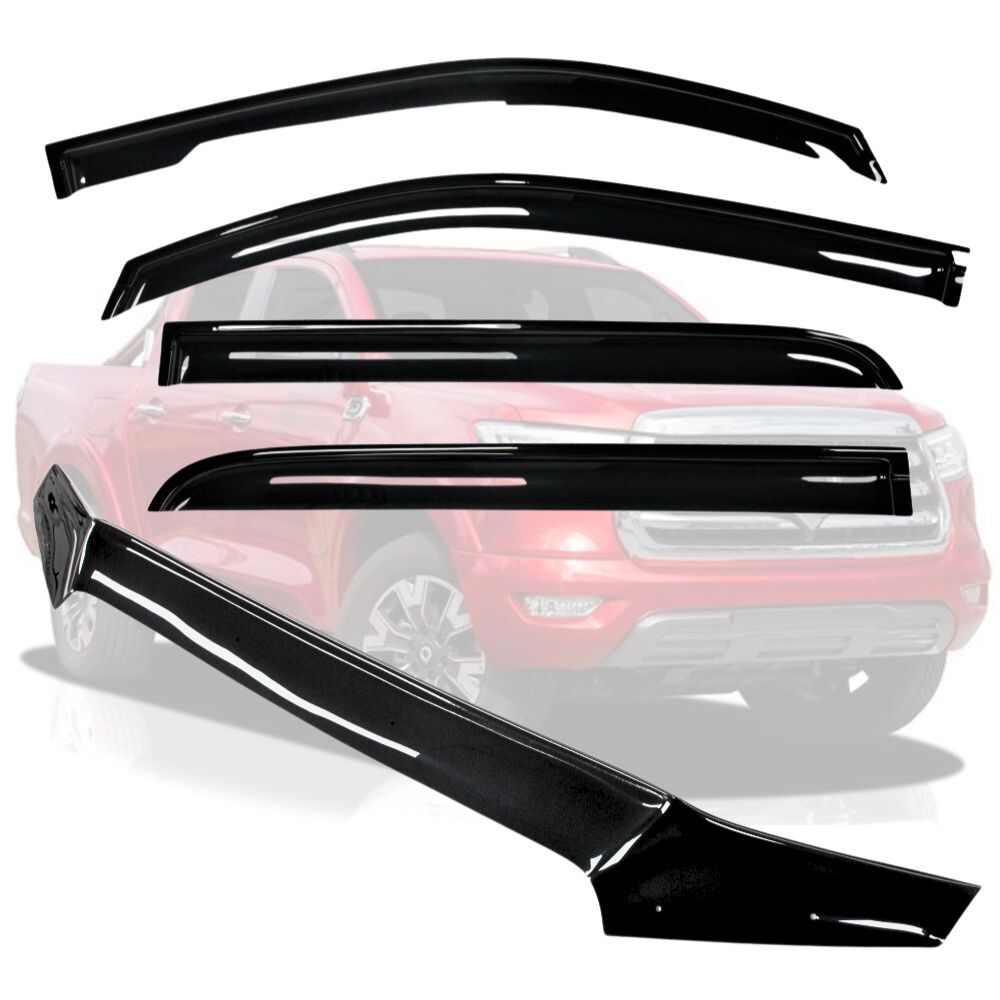 Bonnet Protector & Weather Shields fits Great Wall Motor GWM Cannon 2020 Onwards Black Weathershields Guard Hood