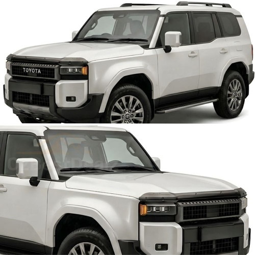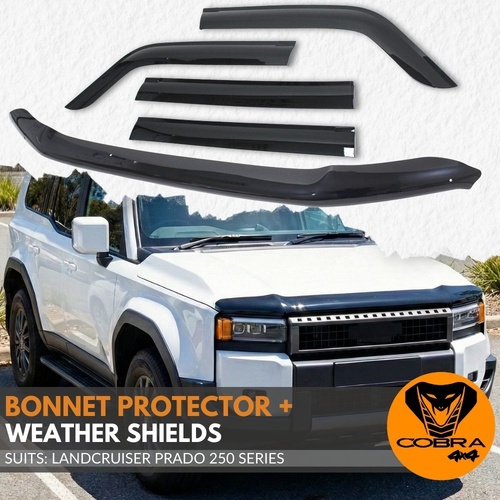 The latest design and top-quality Cobra 4x4 bonnet protector and weather shields to suit Landcruiser Prado 250 Series is now available on the market. Crafted from impact-modified acrylic, this protector ensures long-lasting durability and offers maximum protection while enhancing the stylish look of your car.