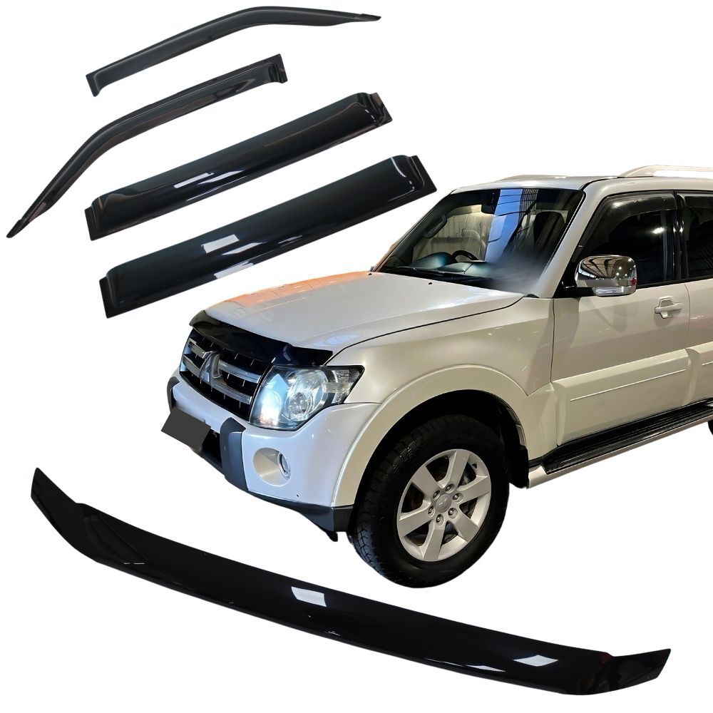 Bonnet Protector & Weather Shields suits Mitsubishi Pajero 2007 - 2021 NS NT NW NX Black