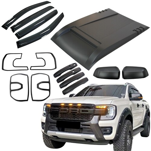Bonnet Scoop Weather Shields Light Trim Mirror & Door handle Cover Fits Ford Ranger Next Gen 2022 + MY22