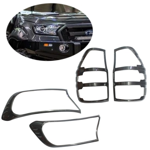 CARBON Fibre Head Light & Tail Light Trim Covers to Suits Ford Ranger 2015 - 2019 Fiber PX2 PX3