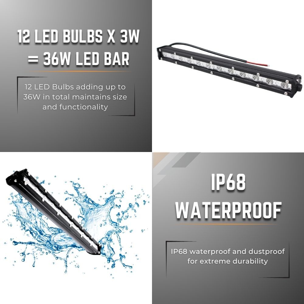 Illuminate your off-road adventures with our new Cobra 4x4 14-inch, 36W ultra-slim LED light bar. Designed for versatility, its sleek profile allows seamless installation on SUVs and Utes. The ultra-slim design ensures easy installation in tight spaces, while the durable die-cast aluminium housing and impact-resistant polycarbonate lens ensure reliability in harsh environments. Waterproof and shock-resistant, this light bar is built to last, ready to tackle your toughest terrains.