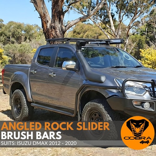 • Fits: Isuzu Dmax 2012 - 2020 Equipped with Cobra 4x4 Angled rock sliders with removable front section.