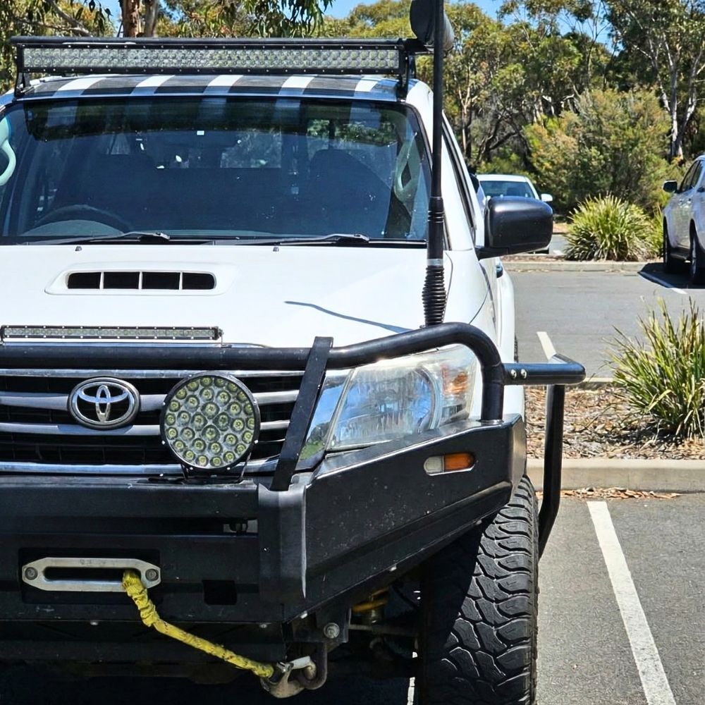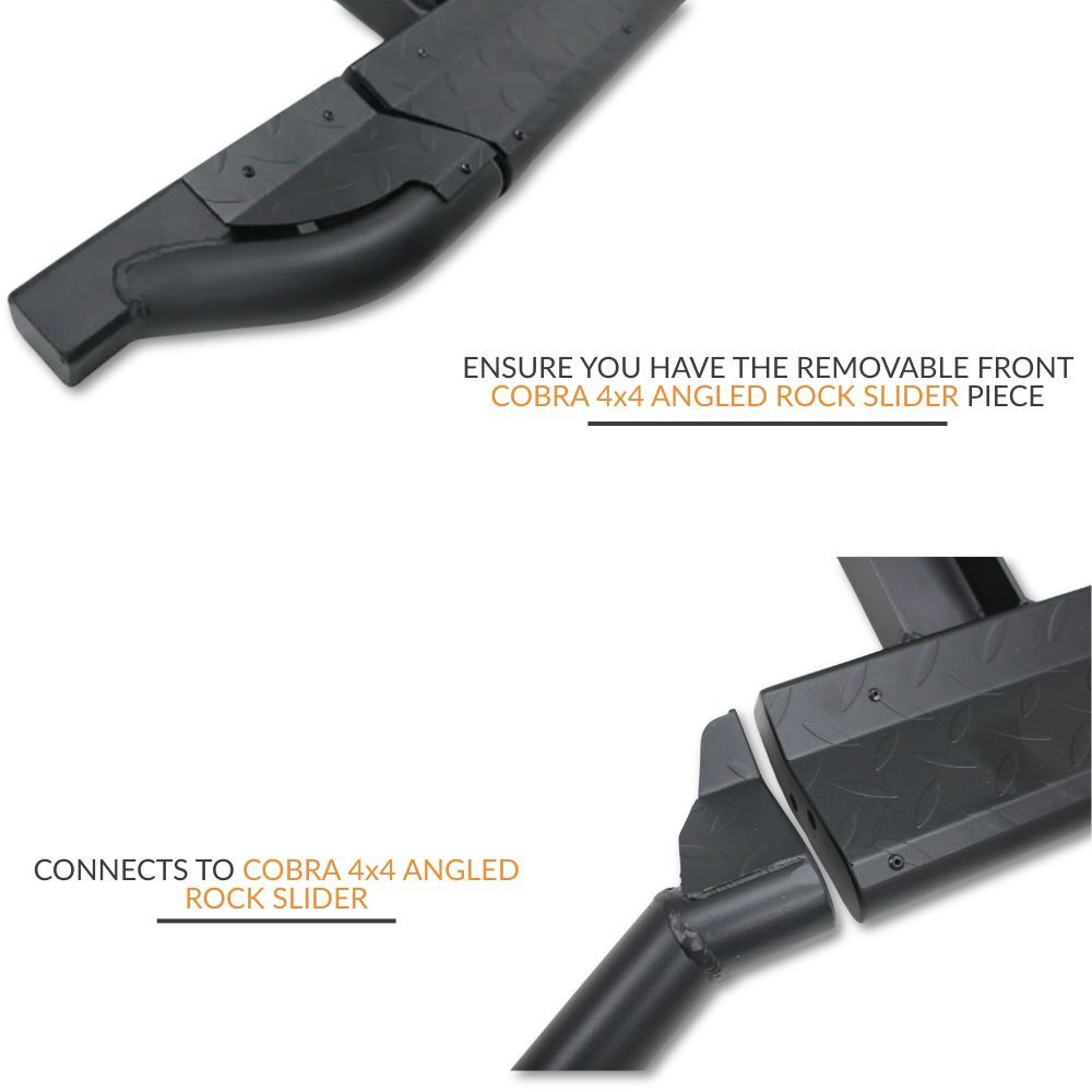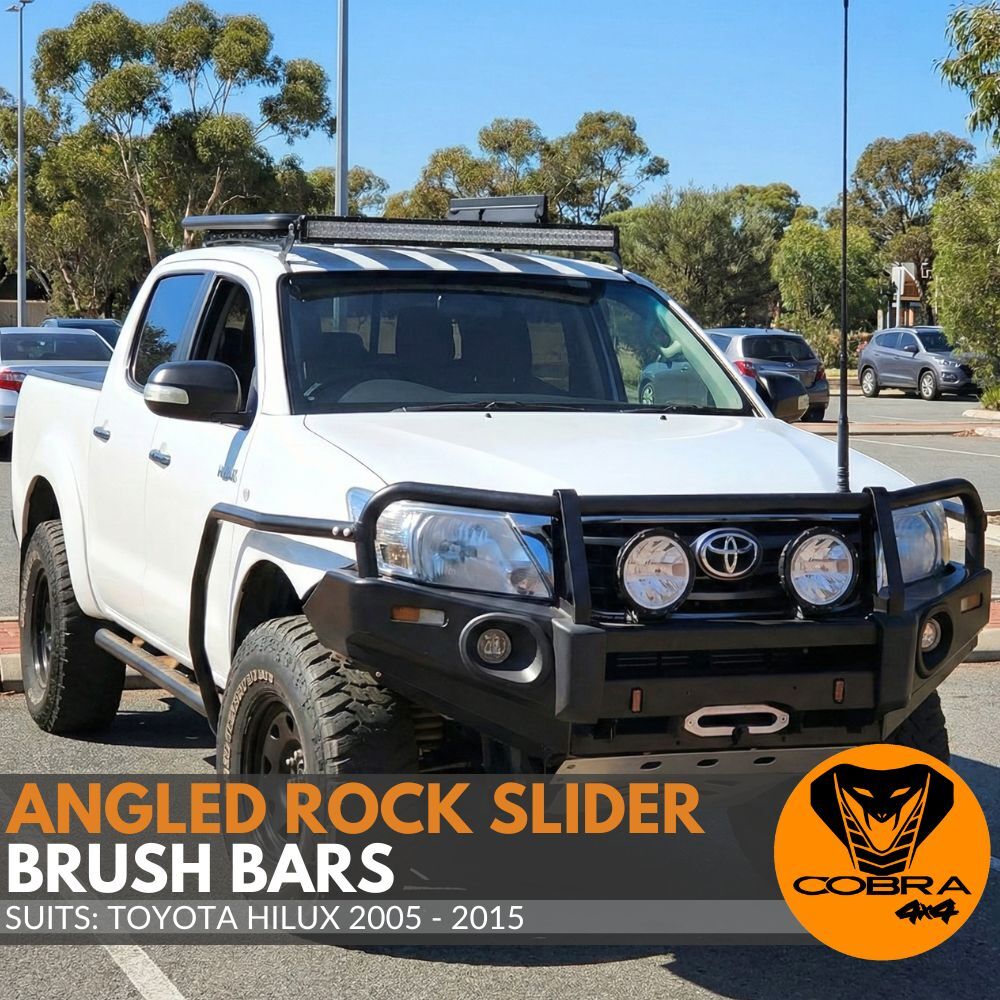 • Fits: Toyota Hilux N70 2005 - 2015 Equipped with Cobra 4x4 Angled rock sliders with removable front section.