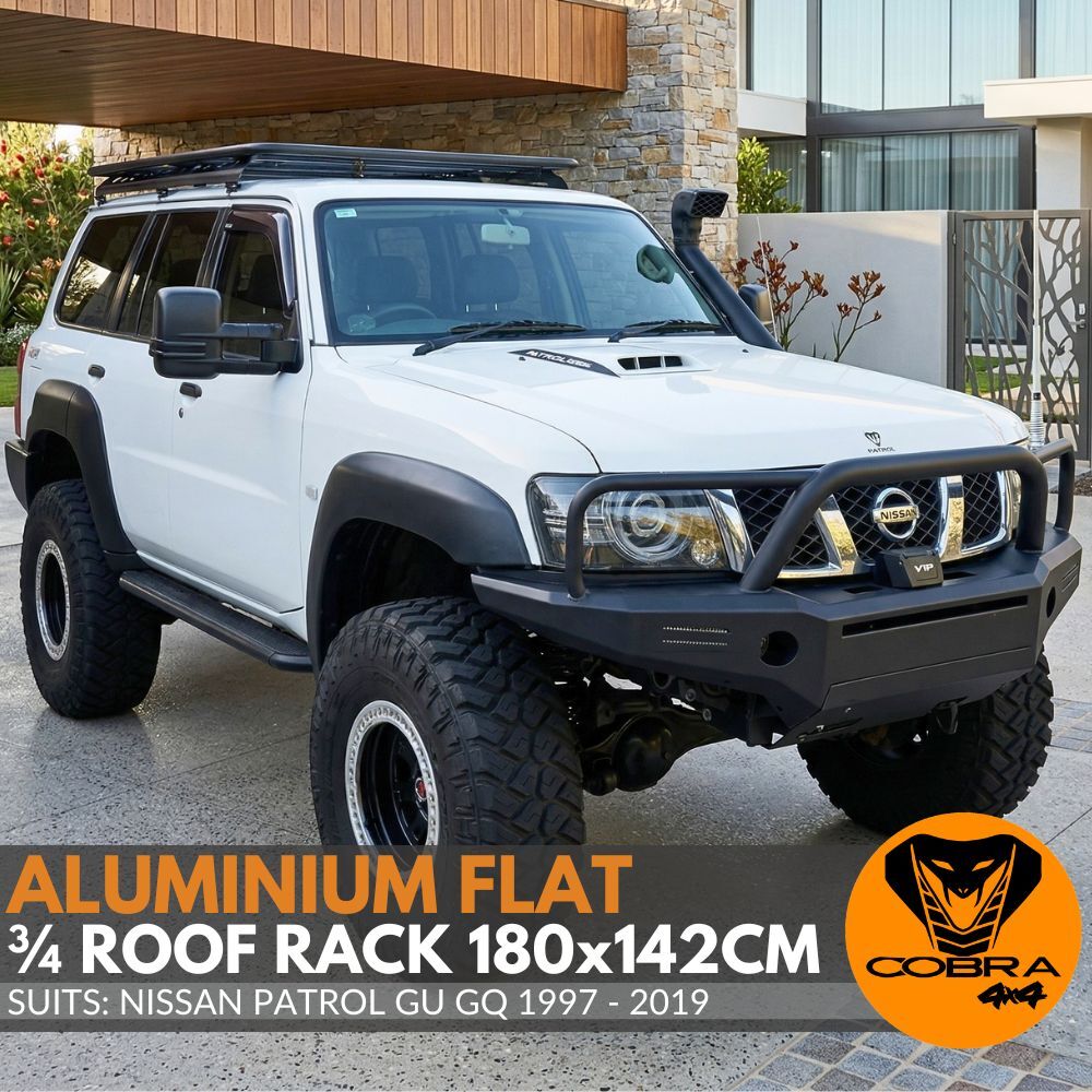 Cobra 4x4 Flat Aluminium 3/4 Roof Rack 180 x 142 cm Fits Patrol GU GQ Y61 Y60 Steel Brackets Half