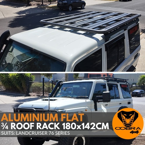 Cobra 4x4 Flat Aluminium 3/4 Roof Rack 180 x 142cm Fits Landcruiser 76 Series Steel Brackets Half