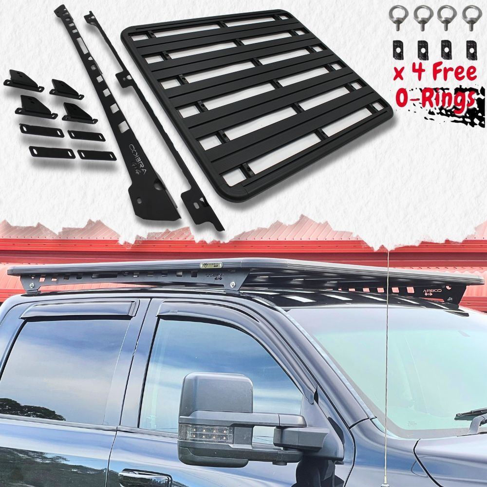 Cobra 4x4 Aluminium flat roof rack with Steel Brackets for longer-lasting protection and durability. This roof rack is suitable for F-150 250 350 2015 Onwards dual cab models.